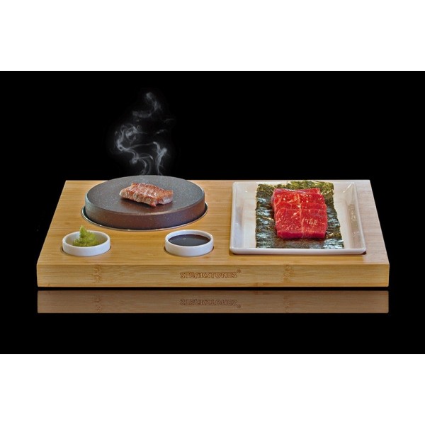 SteakStones Ishiyaki je zasnovan tako, da uživate v pečenju nekaj tanko narezanih rezin mesa, rib ali zelenjave na kamnu, natanko tako kot v restavraciji Ishiyaki.