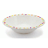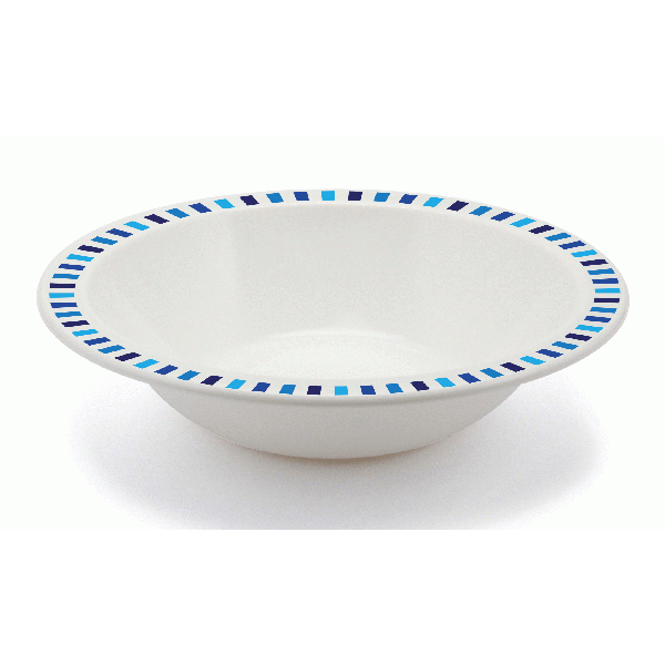 The patterned bowl is available in white with a selection of 15 colourful rim designs.