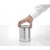 The cutting mechanism works by cutting the side of the can just below the lid.