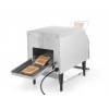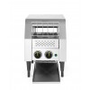 Ena vrsta rezin kruha se prilega na tekoči trak.Dva ločena grelna elementa, en pod in eden nad tekočim trakom.Primerno za neprekinjeno praženje narezanega kruha.Priložena sprednji in zadnji pladnji.Hitrost tekočega traku je nastavljiva, čas praženja med 0:45 in 3:15 minut.